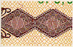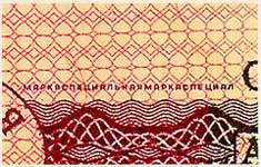Микротекст отпечатан металлографской печатью над орнаментальной полосой и состоит из повторяющихся слов СПЕЦИАЛЬНАЯ МАРКА. |